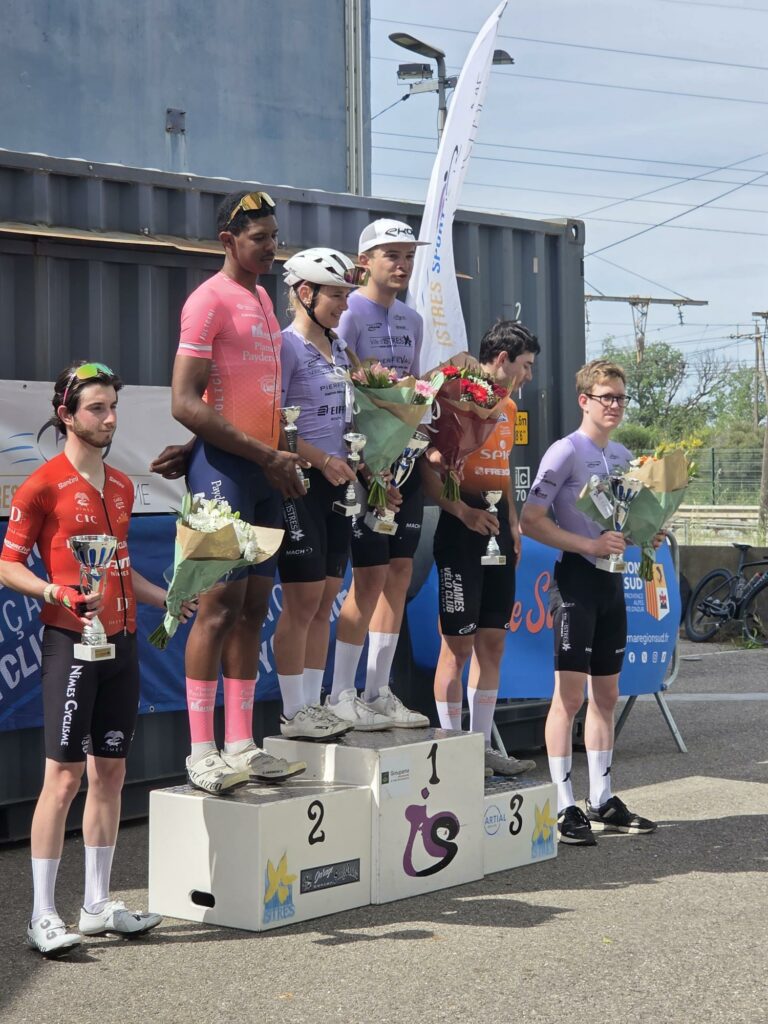 Au-delà de la victoire, c’est toute l’équipe d’Istres Sport Cyclisme qui a marqué les esprits avec un tir groupé exceptionnel :