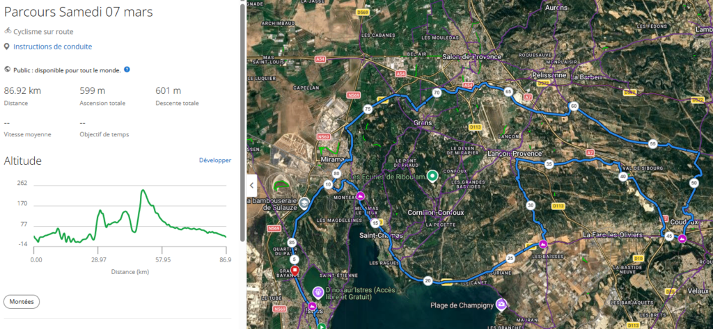 Istres – Miramas – St Chamas – Les Baisses – Lancon – Val de Sibourg – Coudoux – 4 Termes – Pelissanne – Mary Rose – Miramas – Istres