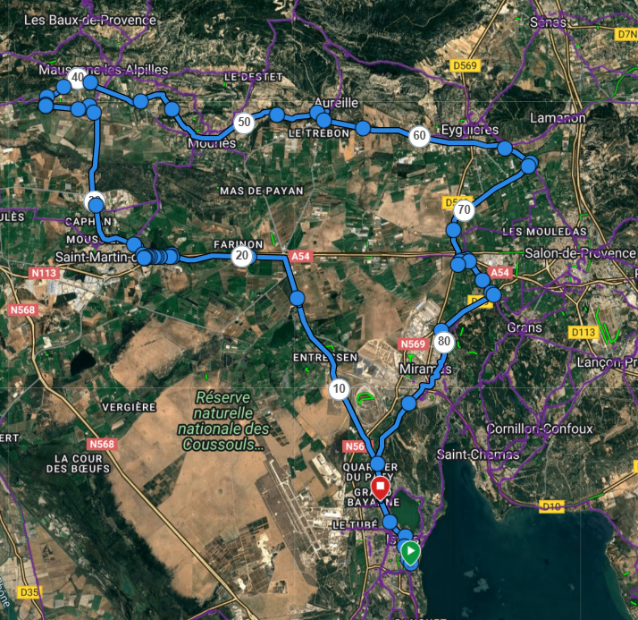 Parcours Samedi 25 Octobre 2025 – 9h00 Posté par Franck Guerra | 24 Oct 2025 | Divers 90km Istres – Entressen – St Martin de Crau – Caphan – Maussane – Mouries – Route des Oliviers – Aureille – Eyguières – Nostradamus – Mary Rose – Miramas – Istres